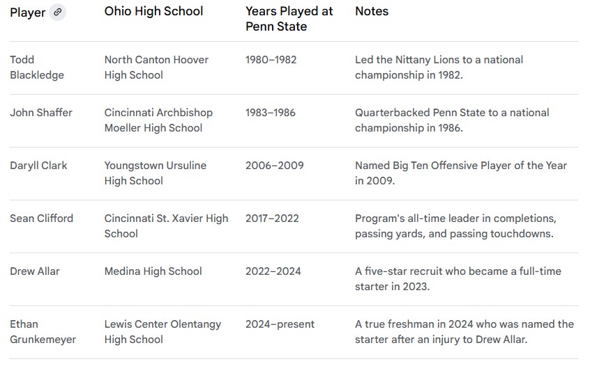From Blackledge to Shaffer, Clark to Clifford, and Allar to Grunkemeyer, the connection between Ohio high school football and Penn State’s quarterback legacy continues to thrive. And while his path took him away from the scarlet and gray, Grunkemeyer’s journey is proof that Ohio’s quarterback factory doesn’t just fuel Ohio State — it helps power one of its greatest rivals, too.